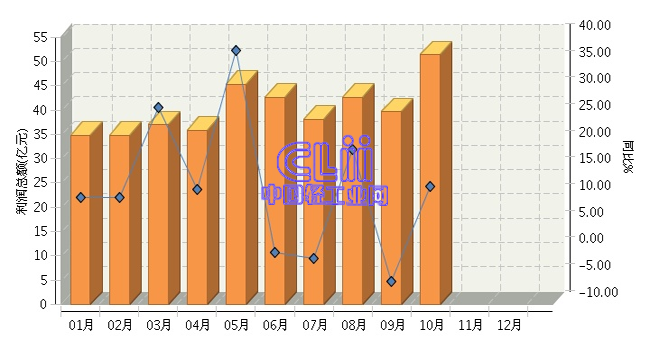 2016年1~10月全国家具行业利润总额累计同比增长10.90%