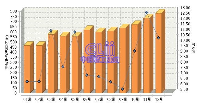 全国家具行业连续三年月度主营业务成本对比