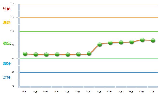图1 2016.6—2017.7自行车行业主营业务收入景气指数变化态势
