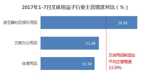2017年1-7月文体用品制造业主营收入增速超轻工平均水平