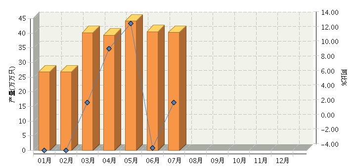 根据国家统计局公布数据,2017年1~7月,全国原电池及原电池组(折R20标准只)行业累计完成产量同比增长2.69%。其中:7月份完成产量同比增长2.53%。2017年全国原电池及原电池组行业月度产量及同比如下图所示。