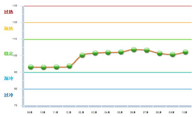 图1 2016.9—2017.10自行车行业主营业务收入景气指数变化态势