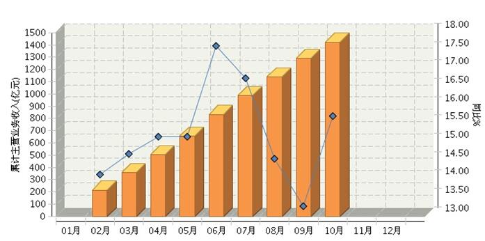 2017年1月~10月,全国自行车制造行业累计完成主营业务收入1,422.74亿元,同比增长15.73%。比9月份累计增速上升2.46个百分点。(参见图2)