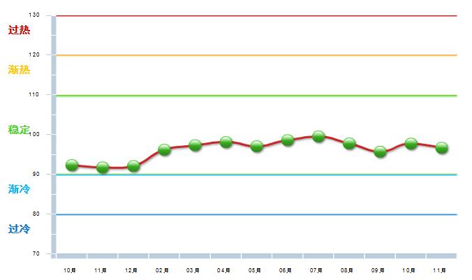 2017年11月自行车行业景气指数96.68