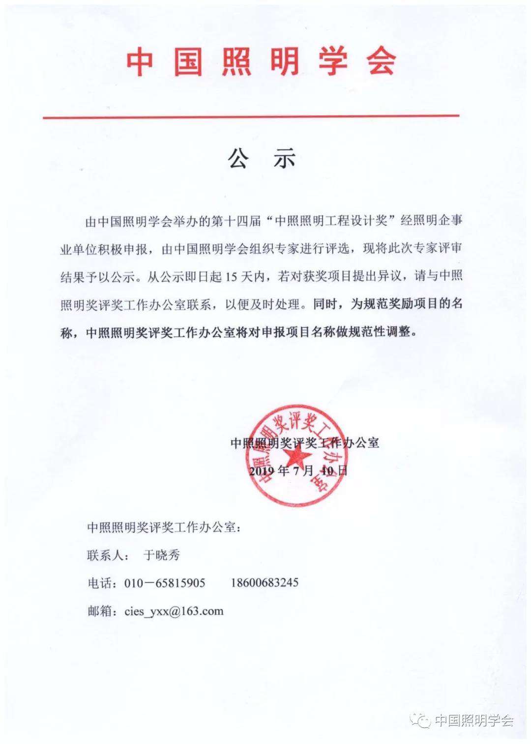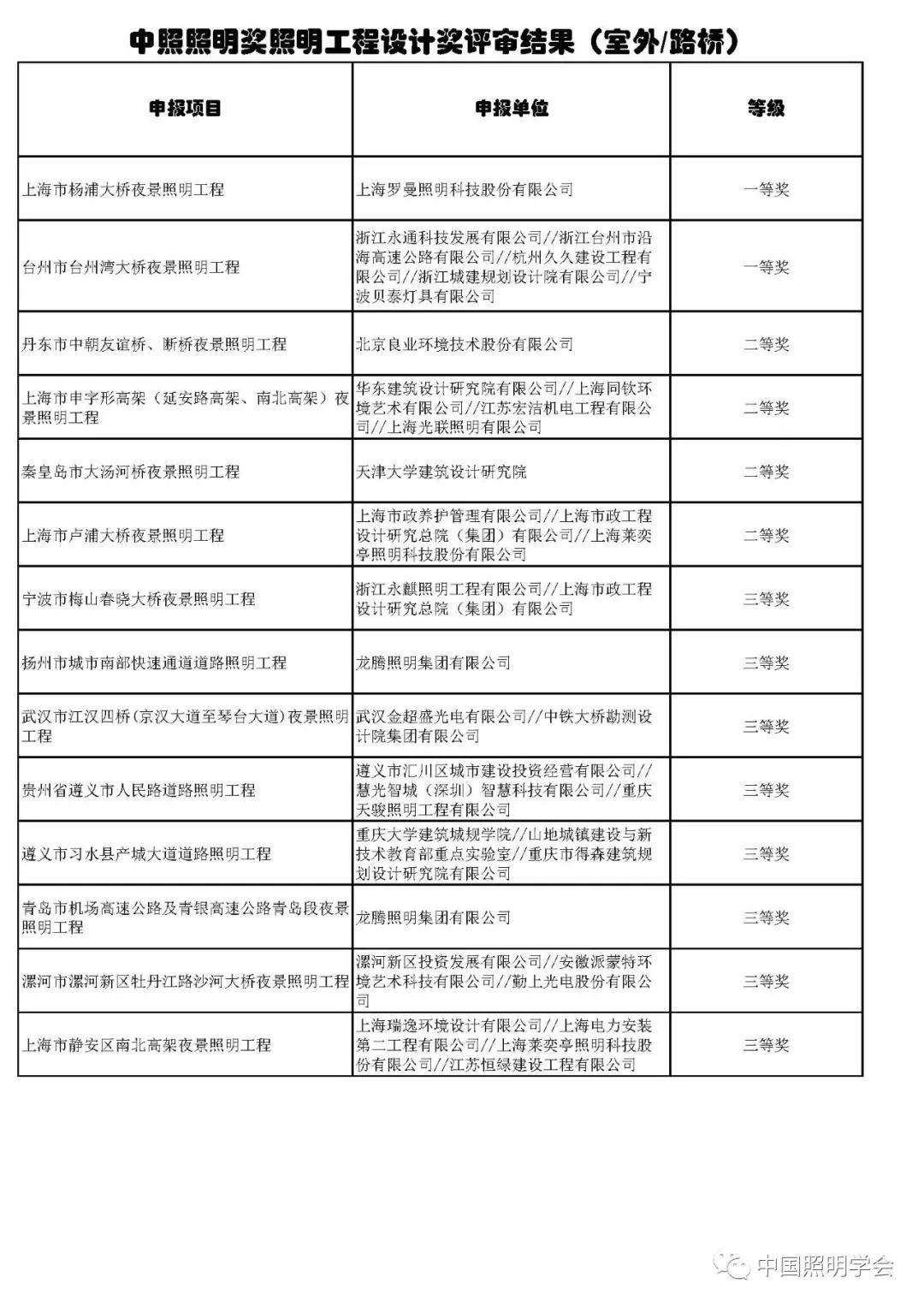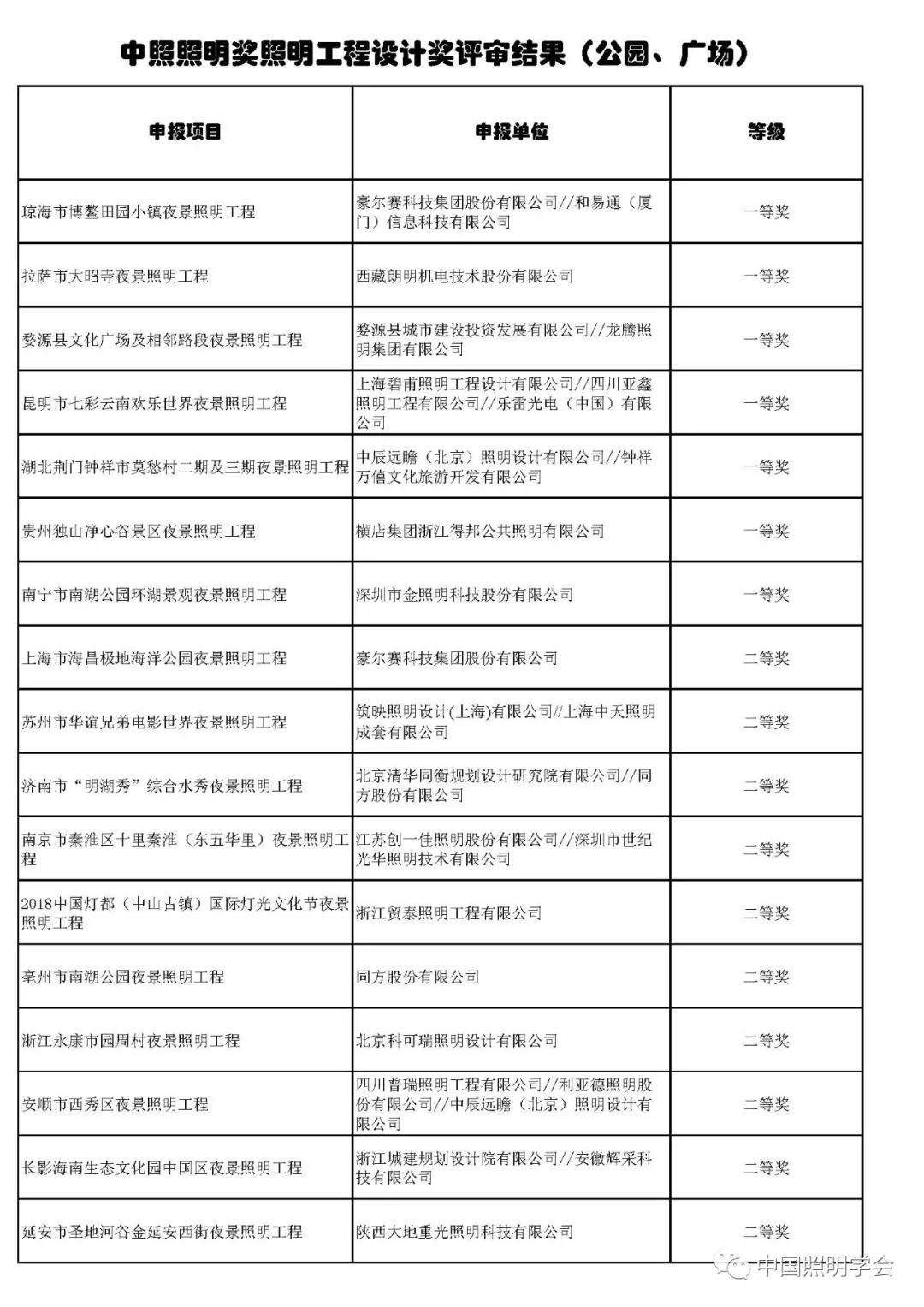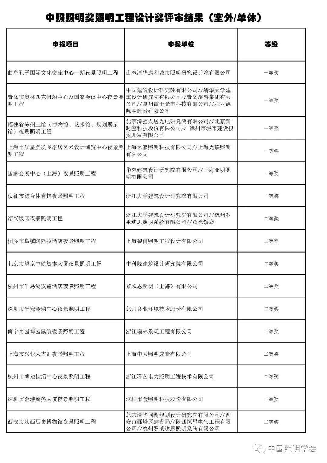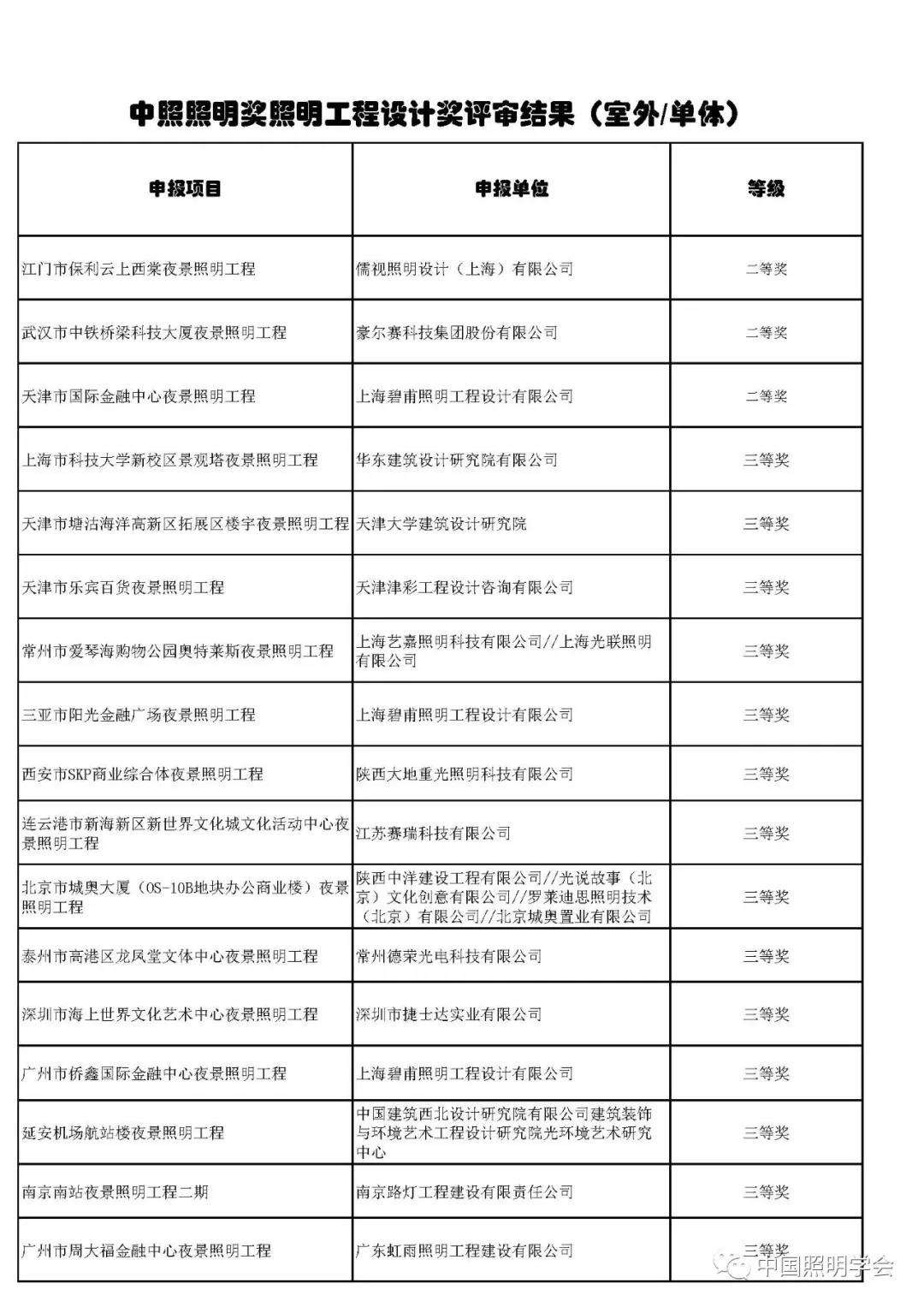 中国照明学会第十四届“中照照明工程设计奖”评审结果公示