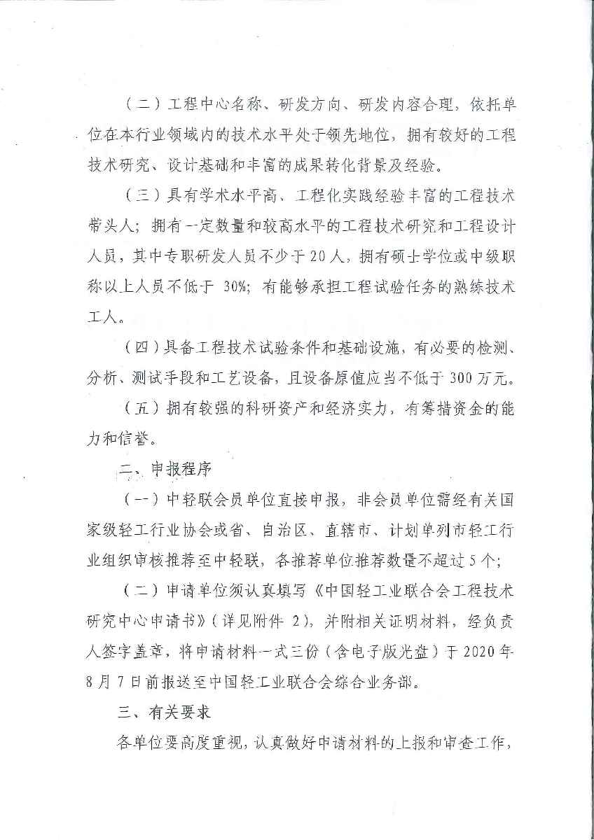 关于开展第二批中国轻工业工程技术研究中心认定的通知