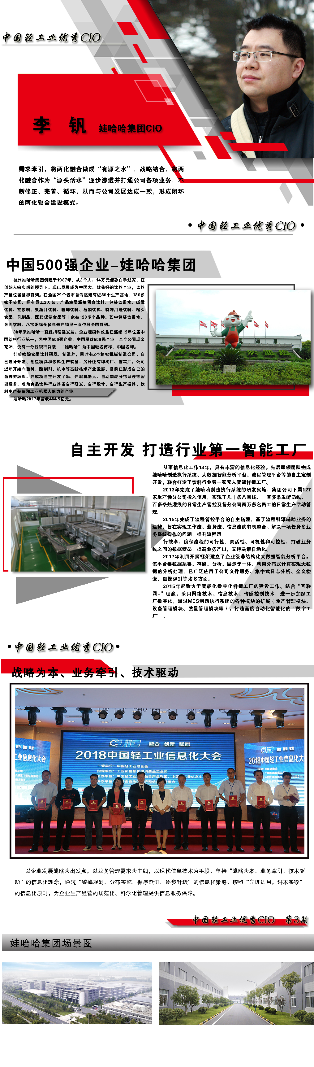 2018中国轻工业优秀CIO--娃哈哈集团CIO李钒