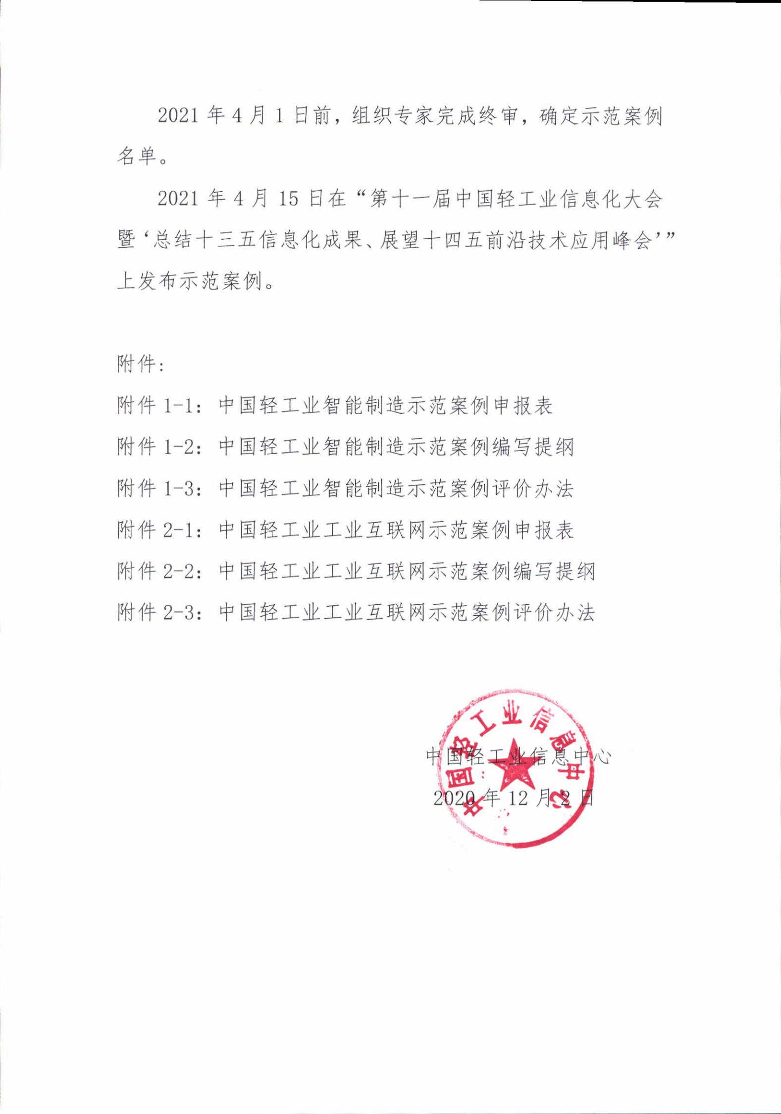 关于开展中国轻工业信息化示范案例推荐评选工作的通知