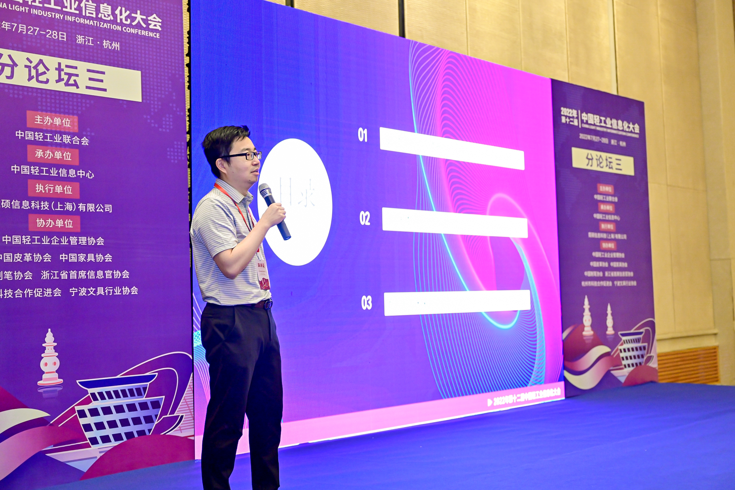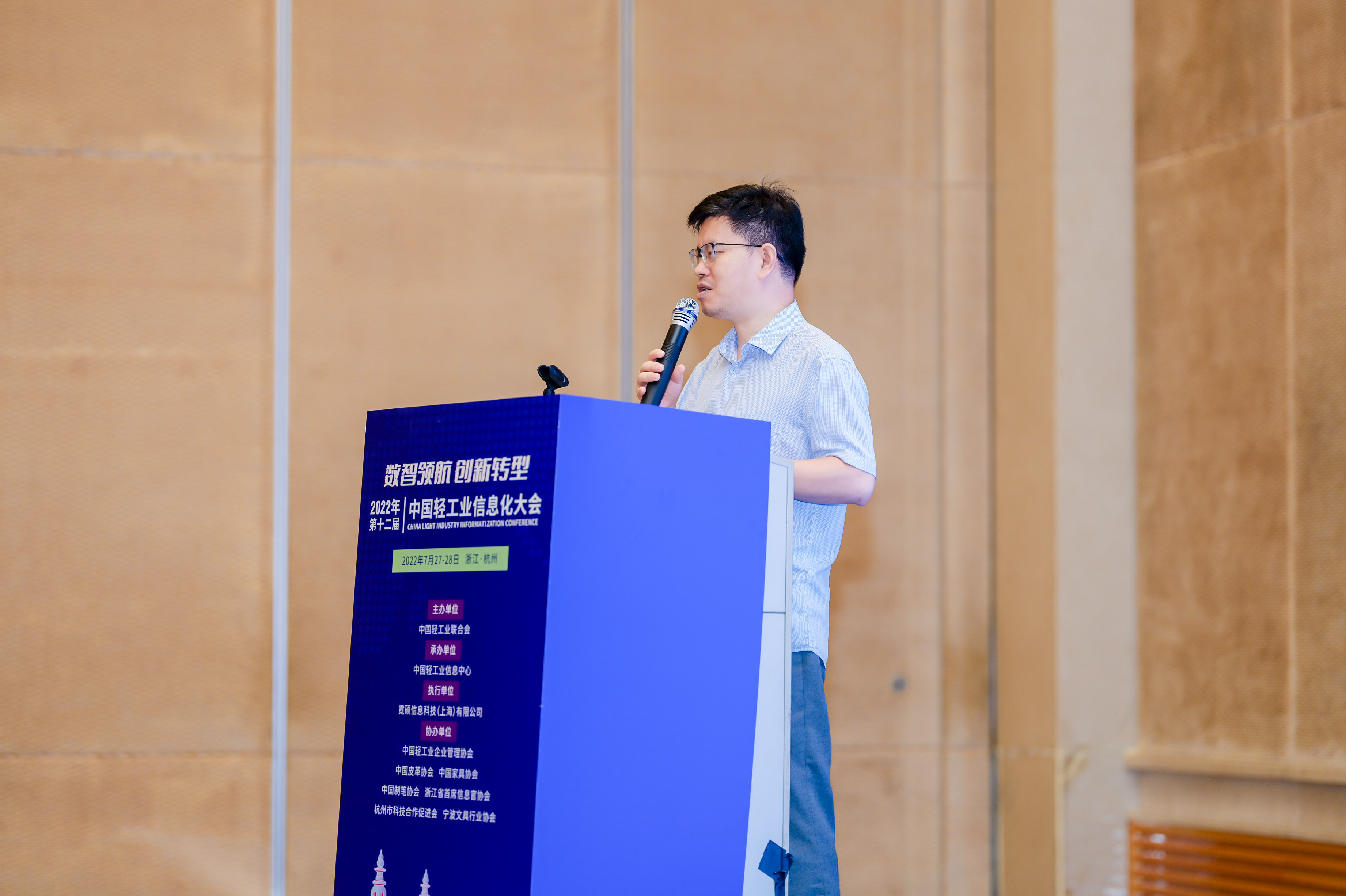 承办,中国轻工业企业管理协会、中国皮革协会、中国家具协会、中国制笔协会、浙江省首席信息官协会、杭州市科技合作促进会、宁波文具行业协会等协办的“第十二届中国轻工业信息化大会”圆满举行。此次会议以“数智领航 创新转型”为主题,旨在深入贯彻落实党中央国务院两化深度融合战略部署,促进数字技术和实体经济深度融合,赋能轻工业转型升级。会上还举行了2022年中国轻工业数字化转型先进单位、2022年中国轻工业数字化转型领军人物表彰仪式。