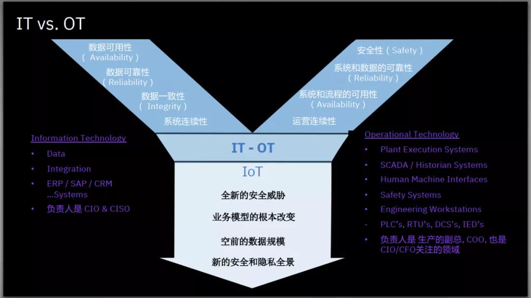 △ IT与OT系统对比(来源:IBM全球安全事业部威胁情报防御产品经理谢明君《从行业安全到OT安全——OT风险与安全管理》)