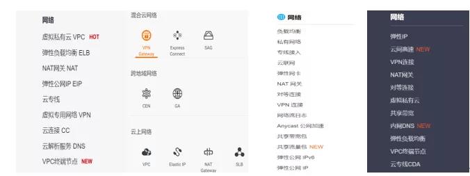 图1 主流云服务厂商云网产品
