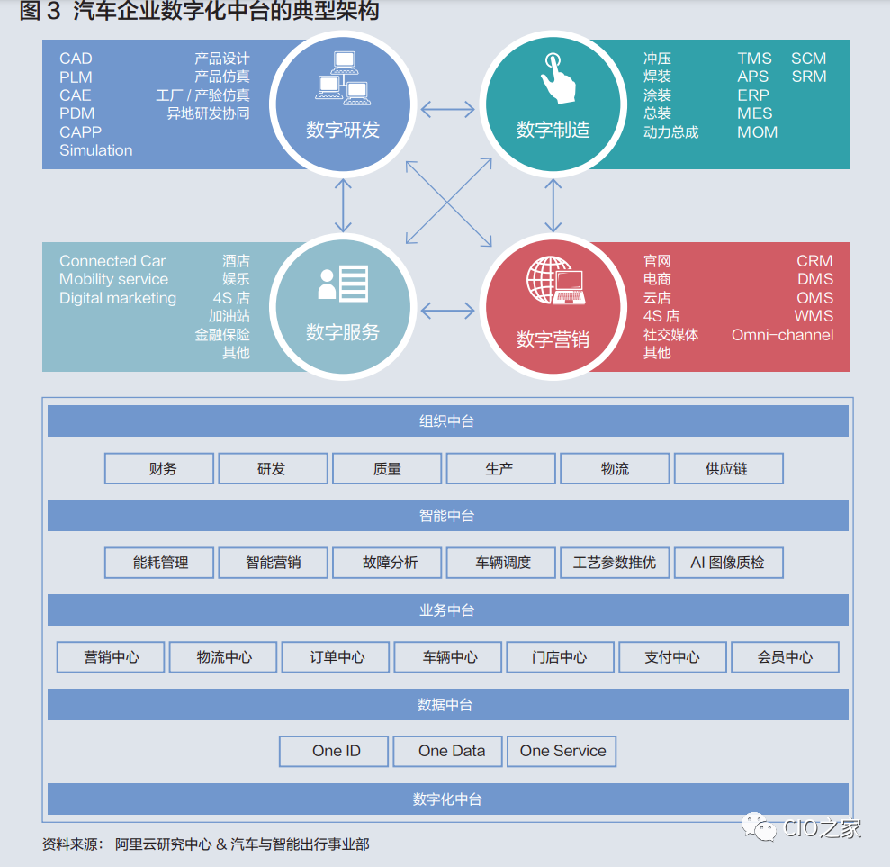 数字化中台建设不仅对互联网企业的可持续发展至关重要,诸多“传统企业”正通过实施中台战略向互联网公司看齐。以汽车行业为例,越来越多的车企正在打造数字化中台。众所周知,数据孤岛是汽车行业长期存在的“顽疾”,数字化中台的构建有助于企业数据的内部(研发、生产等)和外部(营销、出行等)全方位打通,提升研发、生产、供应链的优化和效率,支撑新的以客户为中心的商业模式(比如C2B),加快业务创新的响应能力,降低企业创新成本,提高和丰富客户的出行体验。中台战略可有力地支撑企业从流程驱动向数据驱动转变,正成为汽车行业数字化转型的新趋势。