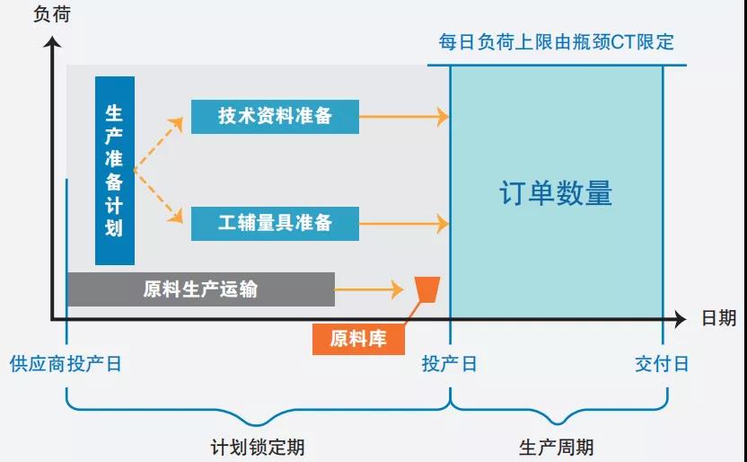 在需求预测转化为生产资源准备的前提下,因为严禁按预测生产,所以必须以订单投产日为基准,倒排一个计划锁定期,让供应商有时间将生产所需的原材料、零部件,生产并运输到企业的生产现场。