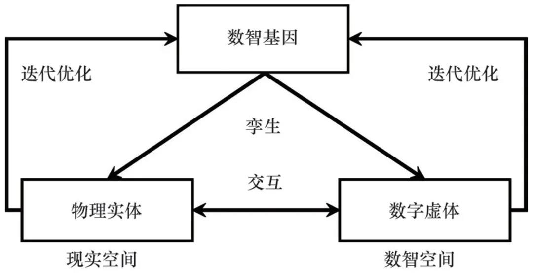 数智基因是数字智能虚拟世界里的DNA,是运用前沿技术对体系的基本核心因素进行数字设计与建模并融入智能机制而得,蕴含人们对虚实世界的基本认识以及在此基础上对未来的设计。