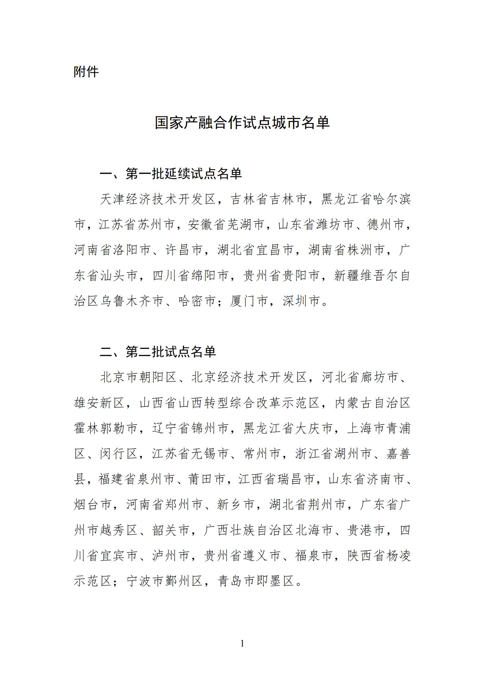 五部门关于同意北京市朝阳区等51个城市(区)列为国家产融合作试点城市的通知