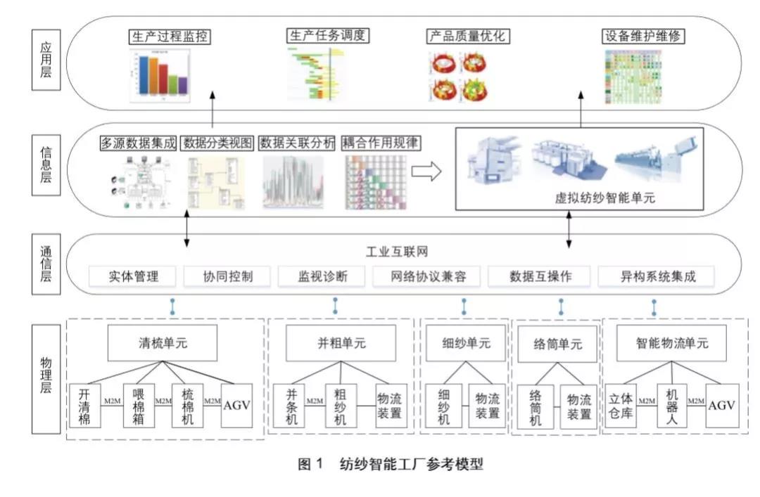 通过各智能生产单元间、生产单元与车间管理系统间以及各单元内部的智能纺纱机械之间的互联,实现各层次信息的共享和数据传输以及物流和信息流的统一,是实现全厂管控一体化的必要条件。