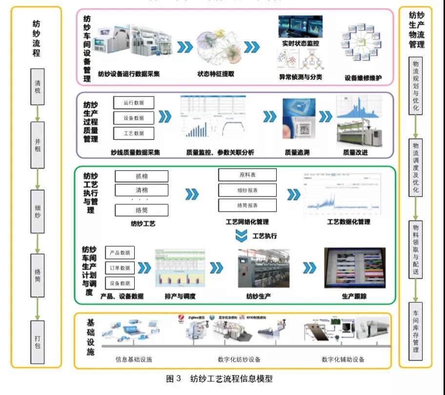通过建立车间数据模型支撑生产过程的自动化处理,通过提取生产单元的生产状况并采用大数据分析技术,为指导生产和优化工艺提供智能决策是当前纺织智能制造需要突破的重点。
