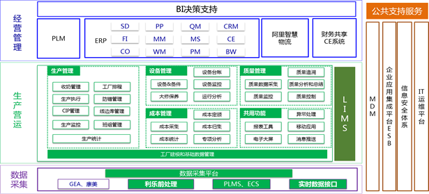 MES实现数据的采集、处理、存储、利用和管理,形成具备生产管理(工作流管理)、称量配料管理、质量管控、物料与仓储管理、设备管理与设备OEE、生产电子批记录和生产绩效评价。