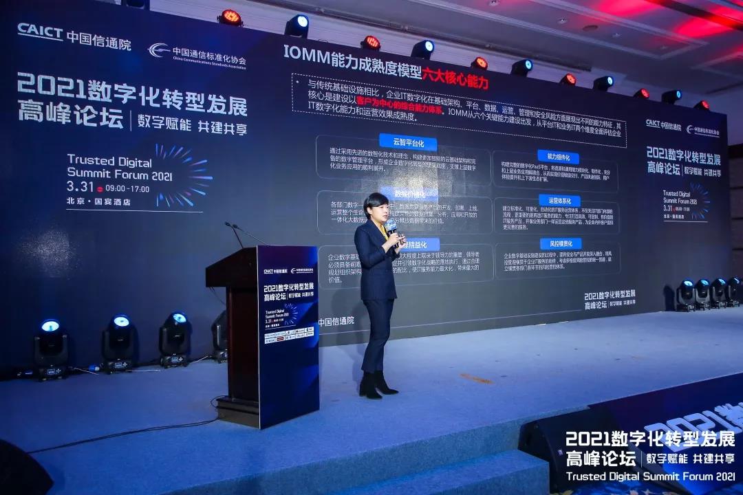 2021年3月31日,由中国信息通信研究院(以下简称“中国信通院”)与中国通信标准化协会主办的以“数字赋能 共建共享”为主题的2021数字化转型发展高峰论坛在京举行。工业和信息化部副部长刘烈宏、中国工程院院士李伯虎、国务院国资委科创局局长苟坪、中国银行保险监督管理委员会统信部副主任骆絮飞、北京市经济和信息化局副局长姜广智等领导均出席了本次高端会议。论坛上,中国信息通信研究院云计算与大数据研究所副所长栗蔚发布并解读《企业IT数字化能力和运营效果成熟度模型》和《数字化可信服务能力要求》系列标准。
