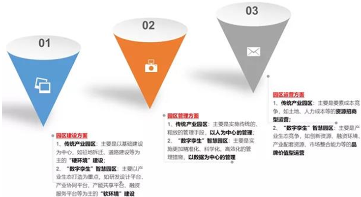 相对于传统产业园区,以数字化技术驱动的新产业园的建设运营将具有以下不同。