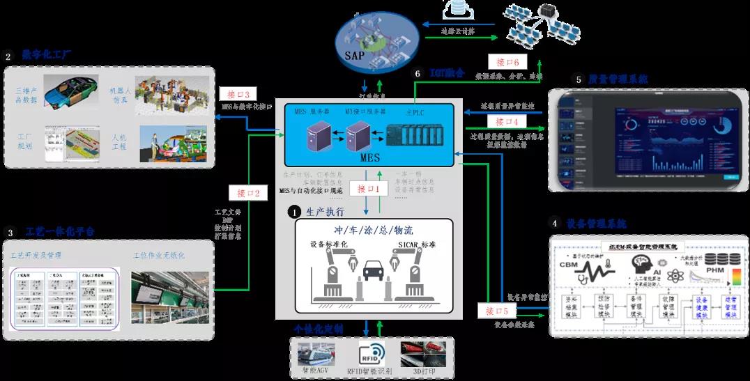 广州工厂投入了大量的自动化设备和信息化应用系统,包含工厂级MES生产执行系统,设备管理系统,质量管理系统,SAP系统,供应商管理系统,WMS系统,AGV智能调度系统,可视化监控系统等。以往各个系统因为基础软件的不同,相互之间都是孤岛,数据需经过离线人为格式转换从系统导入另外一个系统。因此,针对不同工业基础软件的面向业务需求的接口二次开发至关重要。通过MES结合智能识别RFID系统,从制造的角度、从生产计划与生产过点动态角度把所有不同模块从业务的角度串联起来。