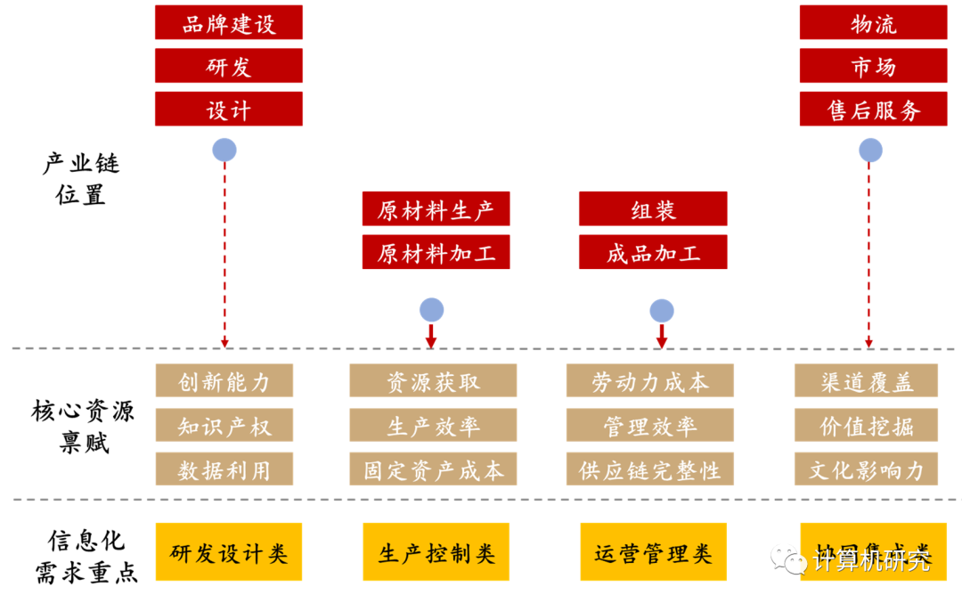 2)工业流程的先进程度在不断演进,对工业软件侧重点也在发生变化。比如,高端制造要求整个工业链条的成本分布进行前置,就是“成本前置”。即在研发设计、生产控制、运营管理整个工业链条中,成本会向前转移,也就是说投入到研发设计的成本占比会越来越大。这也是工业从低阶向高阶演进的必然趋势。