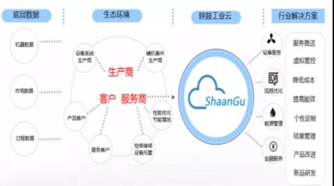 陕鼓推进装备全生命周期MRO(维护,维修,运行)应用,图3是其云服务总貌图。陕鼓的生态环境中,除了自身的生产系统,伙伴企业包括生产商、客户和服务商。