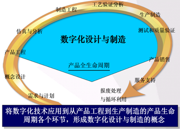 (2)在数字(虚拟)空间中进化。既然人类正在迎来一个数字和物理世界深度融合的年代,这就注定了人类的很多活动会在虚拟世界中进行。工业正是虚实融合的前沿领域,而产品设计开发自然首当其冲。图7是数字化设计与制造的考虑,表明数字化技术可应用到从需求分析、概念设计、仿真分析、工艺验证、制造、质量验证、乃至运维服务以及报废处理。当然这种思维的实践最初还是局限在产品设计和制造(加工)的范围。