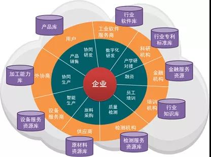 基于智慧工业互联网构建行业网络化协同云平台,形成以企业为中心,上游客户、供应商、加工协作企业、检测、金融服务机构等角色共同组成的产业链协同发展生态圈,提供协同智造、供需对接、工业软件、设备接入、行业资源、产学研等服务。企业可通过生态圈与上游客户协同设计、获取原材料、找到加工协作单位和检测及金融服务,大幅提高产业链协同工作效率、缩短交货期、降低成本。其他角色企业也通过生态圈实现服务化转型。