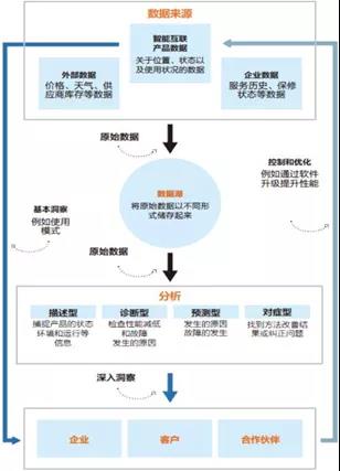 尽管单个传感器捕捉的信息也有价值,但企业若能在长时间内收集不同产品上成百上千个传感器的信息,那么它们将从中辨认出一定的运行规律,从而获得极为重要的产品洞见。例如汽车上有不同位置的传感器,包括引擎温度、节气门的位置、燃油消耗等,将这些信息综合到一起,企业就能发现引擎的运转信息如何影响整车性能。此外,将这些信息与故障关联到一起也极具价值。有时即便公司无法判断故障的根源,也可以根据长期积累的运行规律进行修理。例如,通过测量温度和震动的传感器,公司就能提前几天甚至几周发现即将损坏的轴承。
