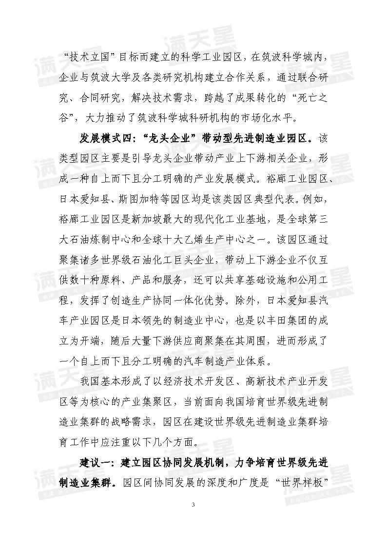 导读:先进制造业是新一轮科技革命和产业变革的主阵地,是大国科技创新和国际产业博弈的聚焦点,是我国产业现代化水平的主要体现。党的十九大报告明确提出“促进我国产业迈向全球价值链中高端,培育若干世界级先进制造业集群”。园区作为培育先进制造业集群的重要载体,正面临新的机遇和挑战。纵观全球先进制造业园区发展的经典案例,总结四大典型发展模式,为我国园区参与世界级先进制造业集群提供新思路、新路径。