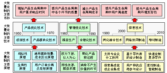 图4 大批量定制的技术体系(图中的数字是该技术出现的年代)