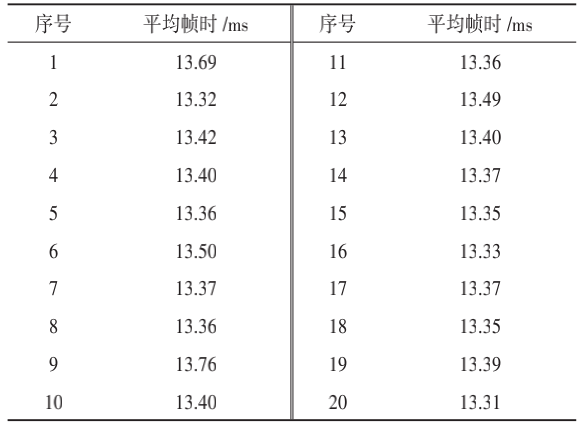 表1 运行仿真帧时