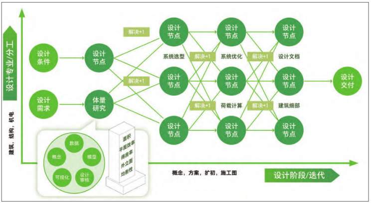 设计概念阶段,充满创意性和发散思维,这一过程注重理念和概念的表达。而在我们通常所说的初步设计和施工图设计阶段,需要把想法和创意逐步完善和落地,这是个系统性的工程深化工作,需要缜密地思考,不断地计算修正,保证系统优化合理并深化各种细节,以保证后续的实施。传统的工作流和业务流并没有很好地解决数据割裂和数据失真问题,而一体化蓝图通过数据层面的融合支持不同阶段的价值,让各阶段的数据能够透明、无缝沟通,打通设计、深化、成本、施工乃至运维各个环节,从根本上重构设计形态,提升设计质量。
