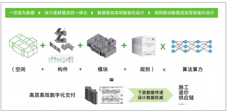 数据驱动(建筑全生命周期数字化)。在设计业务数字化之前,对于设计过程的数据复用程度非常低。在没有一个数据回收归并、组织和管理的机制,以及没有专业的IT知识支撑下,设计人员对于频繁的重复劳动并没有很好的解决方案,造成行业效率普遍较低。数字建筑及其核心的BIM技术,以信息共享、专业协同等能力对全要素信息进行数字化重构,所有的对象都抽象成数据,无论是条件、设计流程、设计要素,以及设计逻辑本身,都被结构化成数据图谱。设计方在建筑的设计和建造过程中,会起到数据制造和处理的核心作用,是整个数字建筑数据流的关键驱动力。