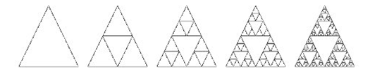 分形(fractal)几何,又称分数维。组成部分与整体以某种方式相似的“形”叫做分形。其重要特点是自相似性。自相似性指的是若将该图形的一部分放大,其形状与全体(或者大部分)相同。不论多小的部分,若将其放大到适当的大小,应该能得出与原来相同的图形。这是一种整体与部分无穷嵌套的自相关、自相似关系。分形体的解改进时,其结构基本不变,如雪花的结构、人的血管和神经的分布等。图2描述了一种分形几何图形通过自相似操作进化演变越来越来复杂的过程。德国瓦纳克(Warnecke)教授在1993年提出了分形企业(fractal enterprise)的理论说明未来企业应是这样一种结构,以模块化自相似的组织结构应对复杂多变的内外环境。