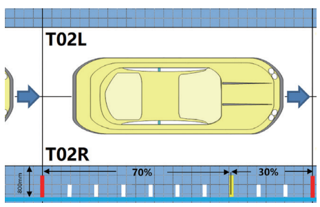 FPS 线是工位的固定停止线。将一个工位的起始位置用红色标识,同时用白色标识将整个工位长度分成 10 等分,并在 70% 处用黄色标识,意味着员工在 70% 节拍时间的时候基本完成装配作业,即将开始自检工作。