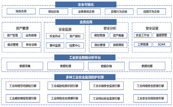 对各安全域的安全设备进行集中管控、状态监测、策略配置下发等,及时发现、报告并处理工业控制系统中的网络攻击或异常行为,统一调度安全预警、安全监测、安全防护和应急处置。