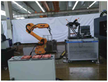 图3所示是典型的在线检测单元,由工业机器人、末端执行器和多源传感器等组成。物流系统将成品运输到指定位置之后,工业机器人将整个检测单元移动到指定工位上,通过视觉相机对待检测零件进行拍照识别和定位,工业机器人再次调整自身位置,使整个检测单元对准待检测部位。