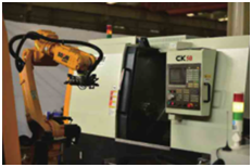 图4所示是陕西宝鸡机床集团有限公司设计制造的加工模块,由工业机器人和车削机床两部分组成。其中,工业机器人负责待加工零件的移动和抓取,车削机床为智能机床,能够保证高精度和加工效率。