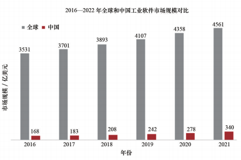 图1 中外工业软件行业市场规模