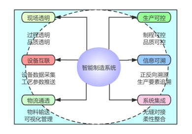 智能产线层:智能产线的特点是,在生产和装配的过程中,能够通过传感器、数控系统或RFID自动进行生产、质量、能耗、设备绩效(OEE)等数据采集,并通过电子看板显示实时的生产状态;通过安灯系统实现工序之间的协作;生产线能够实现快速换模,实现柔性自动化;能够支持多种相似产品的混线生产和装配,灵活调整工艺,适应小批量、多品种的生产模式;具有一定冗余,如果生产线上有设备出现故障,能够调整到其他设备生产;针对人工操作的工位,能够给予智能的提示。 工厂管控层:工厂管控层主要是实现对生产过程的监控,通过生产指挥系统实时洞察工厂的运营,实现多个车间之间的协作和资源的调度。流程制造企业已广泛应用DCS或PLC控制系统进行生产管控,近年来,离散制造企业也开始建立中央控制室,实时显示工厂的运营数据和图表,展示设备的运行状态,并可以通过图像识别技术对视频监控中发现的问题进行自动报警。