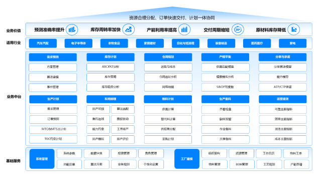 APS高级计划与排产被誉为企业供应链优化引擎,被视为前景远大的“工业新星”,在企业计划运营体系中处于核心地位,承载了订单到交付的全流程。美擎高级计划与排产APS通过基于全价值链协同、产销计划一体化,结合智能算法、行业模型支撑,构建智能决策系统,赋智关键业务场景,实现供应链运营的高效与智能,最终实现“以数据为支撑,高效地组织优质的资源在合适的时间、地点,以合适的成本将商品和服务交付给客户,满足客户需求”的供应链运营目标。 经过不断的探索以及多行业实践,美擎高级计划与排产APS已逐步构建较为完整的供应链计划智能化应用场景,全方位构建数据驱动的供应链智慧运营平台,实现从供应链销售预测、S&OP到生产计划与排程、物料计划全流程,完整的APS+SCP解决方案,实现生产计划透明高效、订单准时交付,提高生产排产和供应商协同效率,缩短供应链计划运行周期,从策略上上推动企业供应链高效运营。
