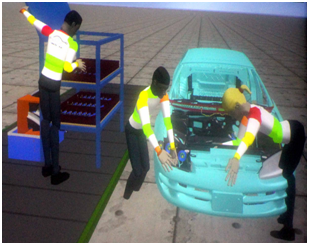 工艺布局的仿真可以实现以下功能:①检验产品生产线上各生产要素是否齐备,检验生产原料堆放场地是否得到合理利用,适用于何种运输工具;②检验工艺布局是否符合流水化作业进程,检验运输通道是否流畅;③在产品装配过程中可进行静态和动态干涉检查,进行装配工人的视界检查;④在进行数字工艺准备设计的同时,可以进行定位和配合检查,进行实际的装配过程(包括安装顺序)的可视性检查等。通过仿真验证工艺布局的合理性,调整装配工艺流程、资源人员配置及相对位置,以减少交叉路径,减少迂回现象,减少移动距离,减少成本,达到优化工艺布局的目的。