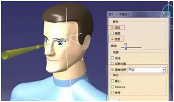 (2)通过编辑人体模型状态,模拟显示操作者的视野范围;