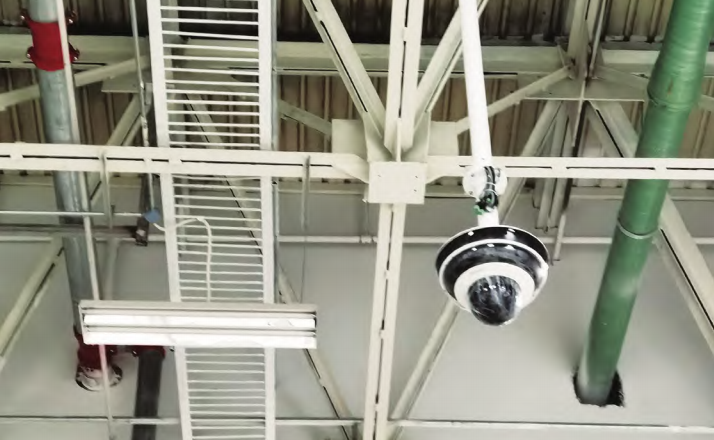 工厂采用海康威视 200 万像素全景摄像头(图 3),3 个全景镜头支持独立上下左右滑动,全景红外照射半径 30 m,同时支持报警联动功能,员工可以随时随地掌握库房内部是否存在异常情况。