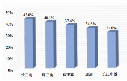 有数据显示,长三角、珠三角和京津冀三大城市群的中小企业数字化转型比例高于全国平均水平,其中,长三角城市群的中小企业数字化转型比例最高,珠三角次之,京津冀最低,所占比例分别为43.0%、40.1%、37.4%。成渝和长江中游城市群的中小企业数字化转型比例低于全国平均水平,所占比例分别为34.6%、31.0%。长三角、珠三角和京津冀三大城市群的中小企业数字化转型表现突出,主要原因在于三大城市群拥有成熟高效的市场、发达完备的基础设施建设、充足的数字人才储备,加之本地制造业贸易和互联网行业发达,在数字化转型方面具有优势,因此,中小企业数字化水平较高。