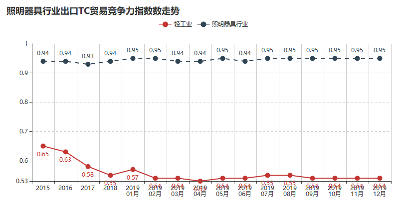 2019年12月照明器具制造业贸易竞争力指数0.95