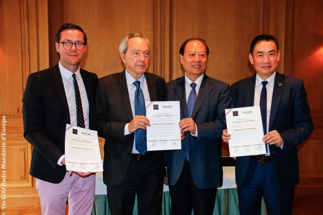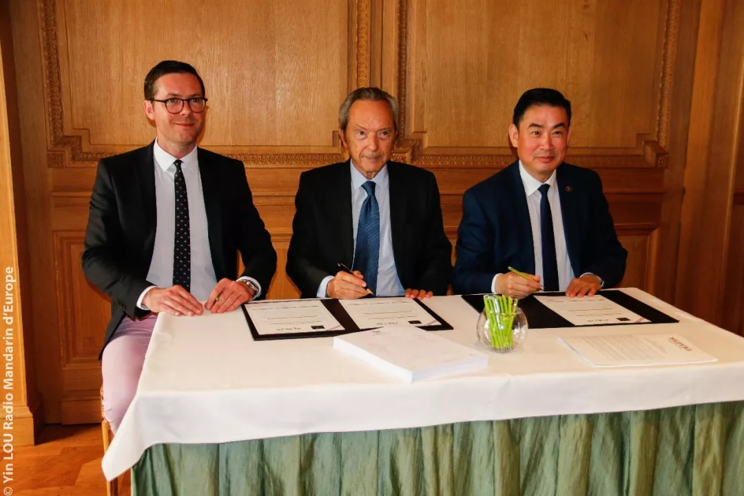 (欧洲华语广播电台·记者·楼寅)2018年6月8日,法国ALGAM董事长、普雷耶国际公司本杰明·加尼叶先生(Benjamin Garnier)、普雷耶(中国)公司罗建峰先生及隆·提博(玛格丽特·隆)国际音乐比赛(Concours Long-Thibaud-Crespin)创始人之一贝尔纳德·福尔克先生(Bernard Volker)于巴黎布里斯多酒店共同签署了多方合作协议,拟定于2020共同在中国举办年隆·提博(玛格丽特·隆)国际音乐比赛。法国中国乐器协会理事长王世成先生、中国旅法钢琴家黎耘女士、中法文化艺术交流协会骨干成员等嘉宾受邀出席签约仪式。