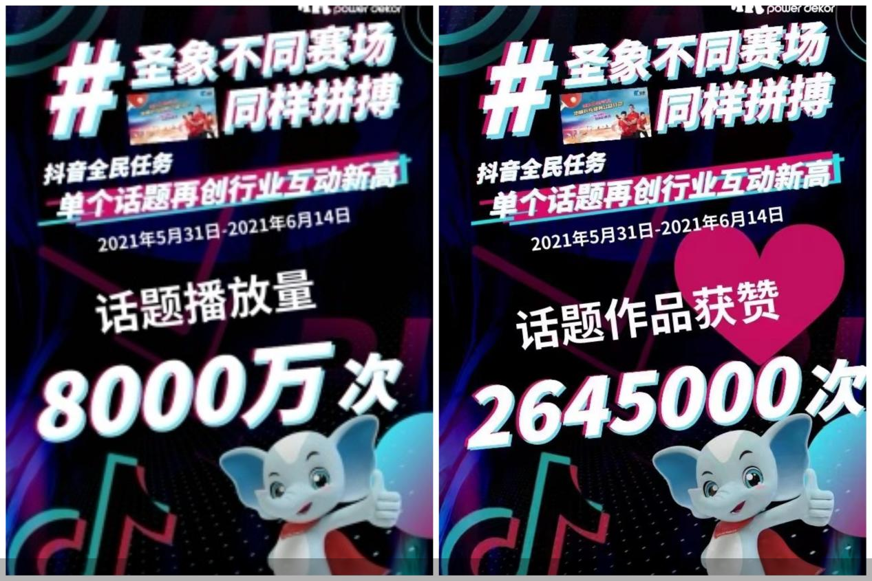 截止到2021年6月15日10:00,圣象地板发起的#圣象不同赛场同样乒搏抖音全民任务已经获得全平台累计8000w+的播放量,点赞量264.5w+,热度持续走高的同时,国民地板品牌圣象也再度凭借极高的关注度光速出圈。这也是圣象地板在年轻化营销道路上的又一次成功示范。